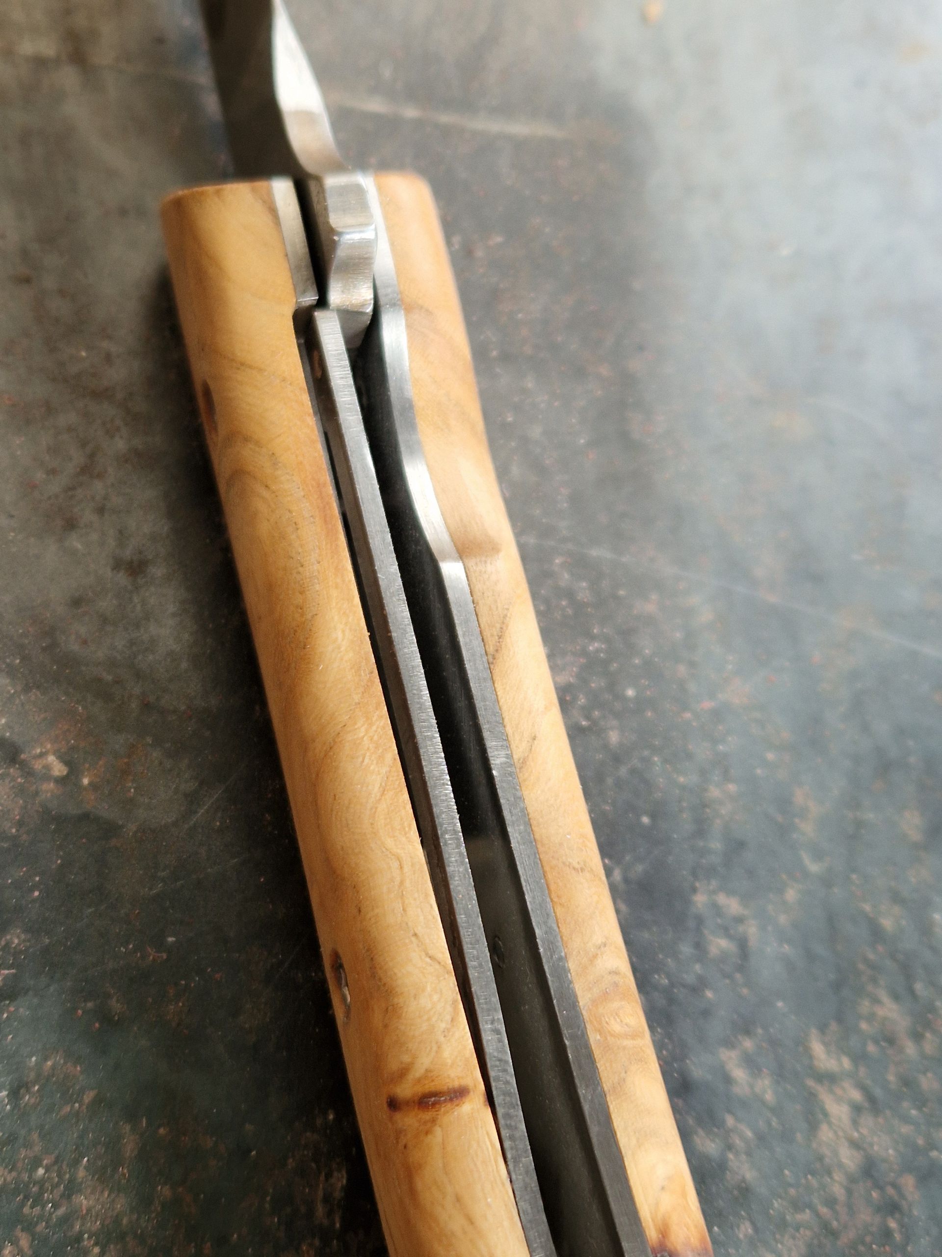 Le liner-Lock désigne un mécanisme précis de verrouillage de lame. Le principe est simple, mais ingénieux : une platine interne que l’on appelle lockbar vient se plier lors de l’ouverture et bloquer fermement la lame en position ouverte. Une pression latérale sur cette platine suffit pour déverrouiller le couteau. Ce qui permet une utilisation très fluide, souvent d’une main – et c’est là tout l’intérêt.
